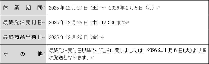 年末年始の休業日につきまして、下記の通りお知らせいたします。