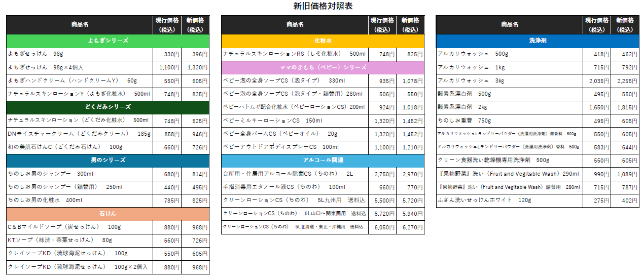 対象商品・新価格は、新旧価格対照表ご覧ください。
